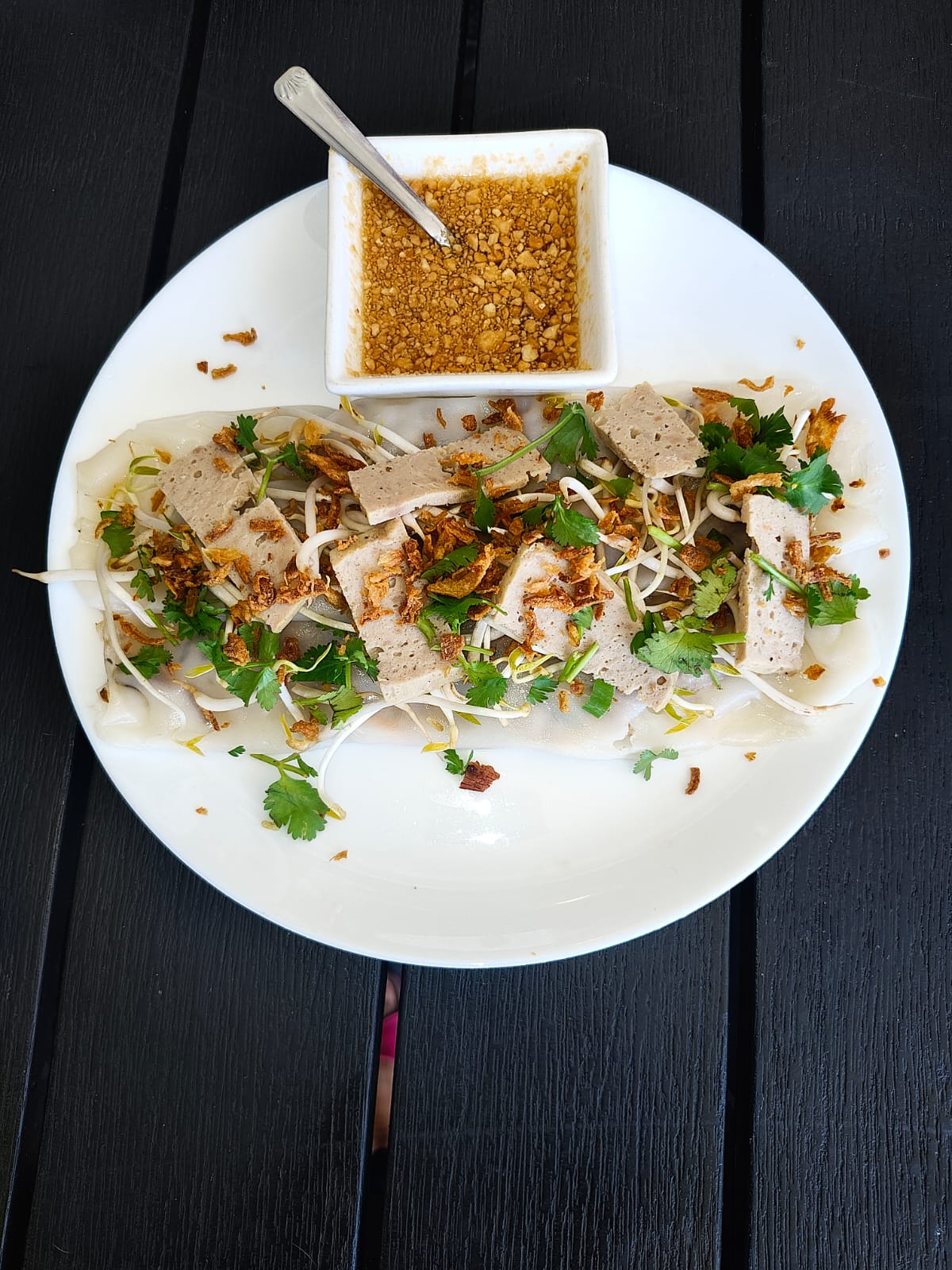Rice Noodles, Stir-fried with Vegetables and Egg, Lightly Seasoned with Sweet and Sour Sauce, Peanuts, and Bean Sprouts