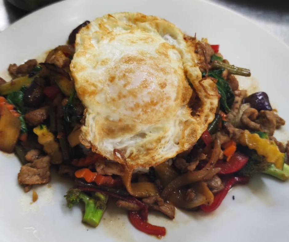 Minced Pork or Chicken, Sautéed with Basil and Vegetables
