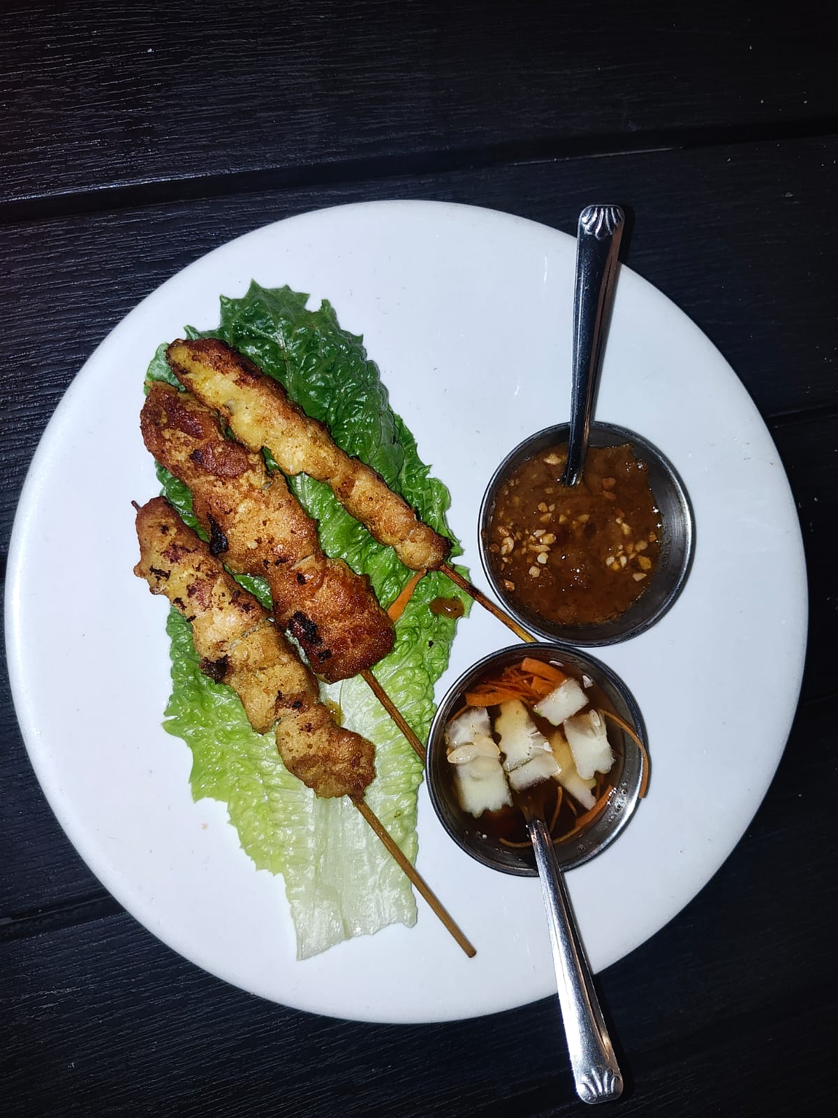 The Famous Peanut Sauce, 120gr of Pork on 4 Skewers