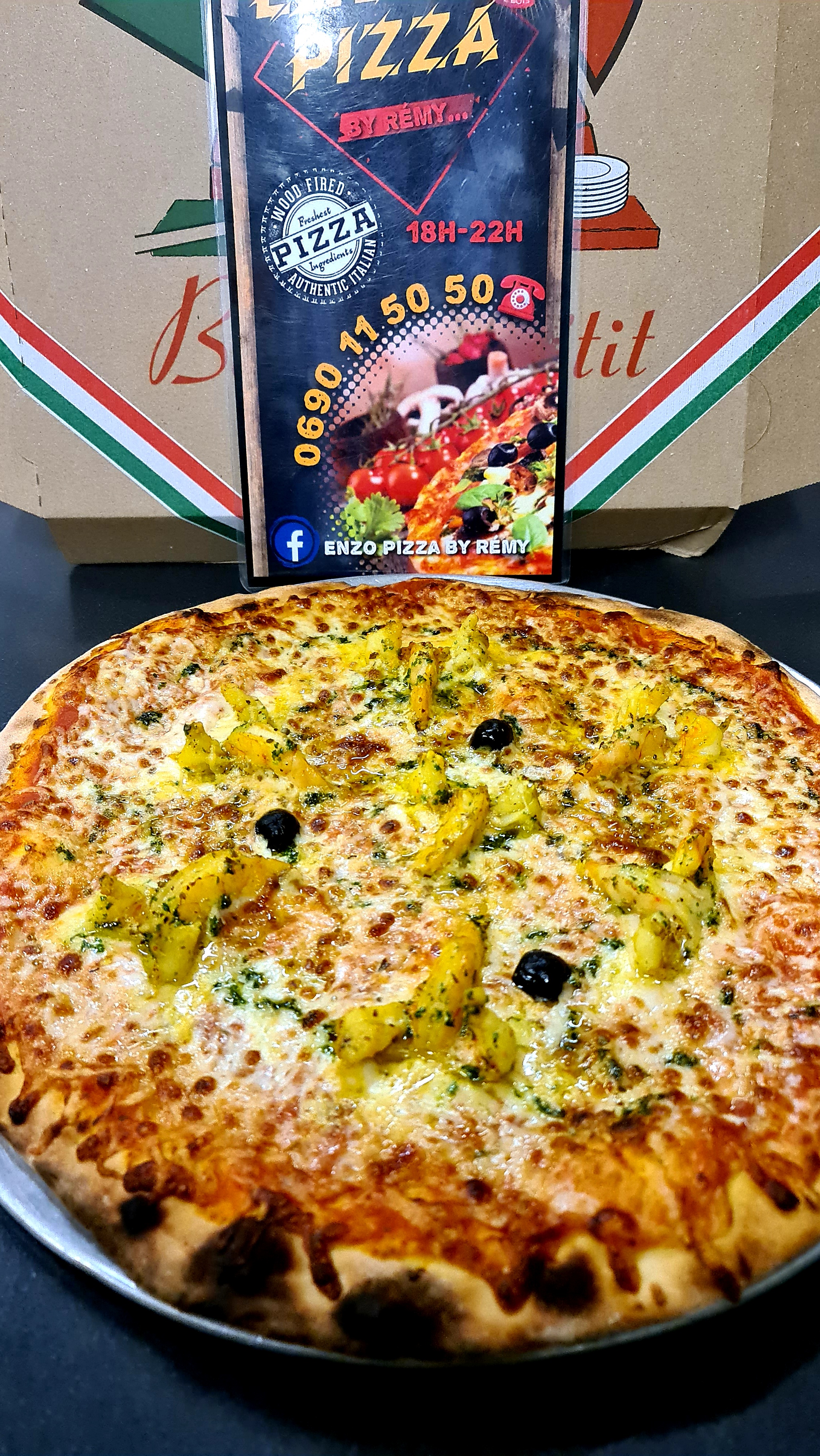 Tomato, Cheese, Shrimp, Bacon, Persillade, Cream, Olive, Oregano