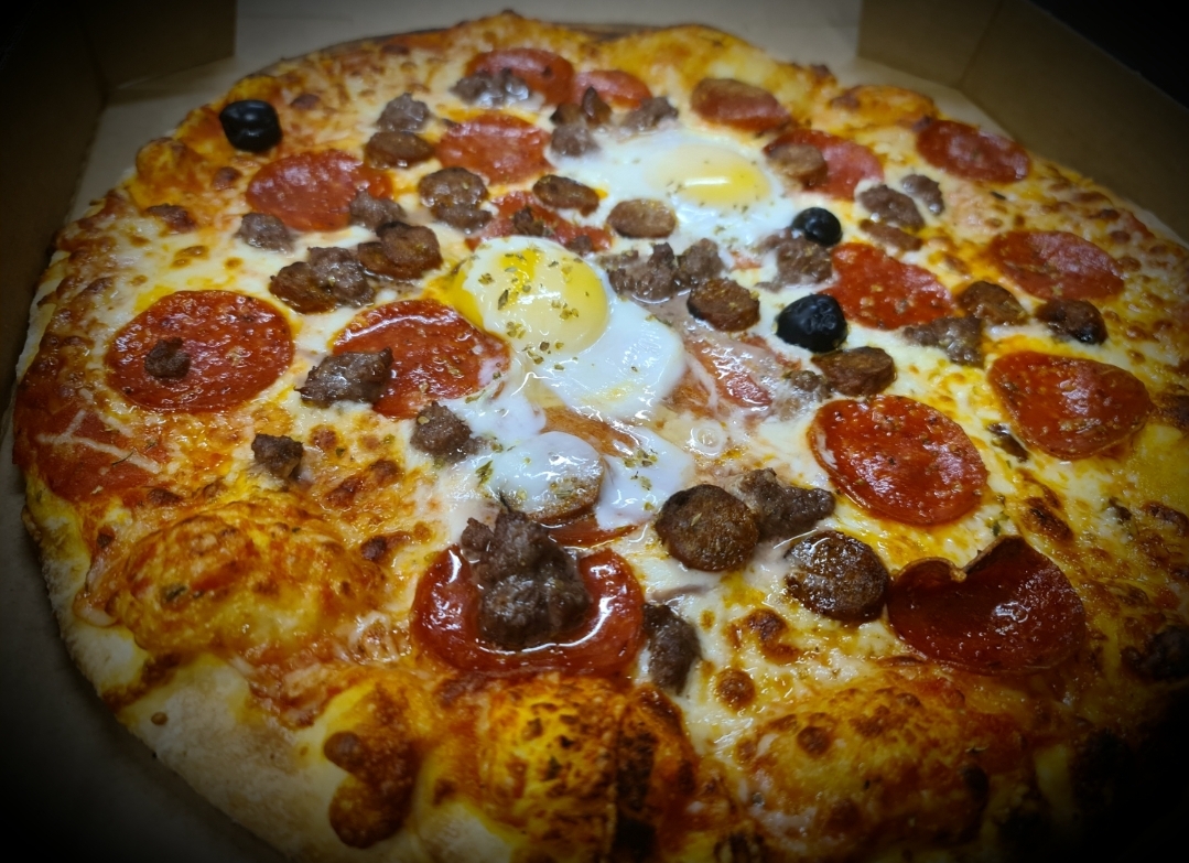 Tomato, Cheese, Pepperoni, Minced Meat, Merguez, 2 Eggs, Olive, Oregano