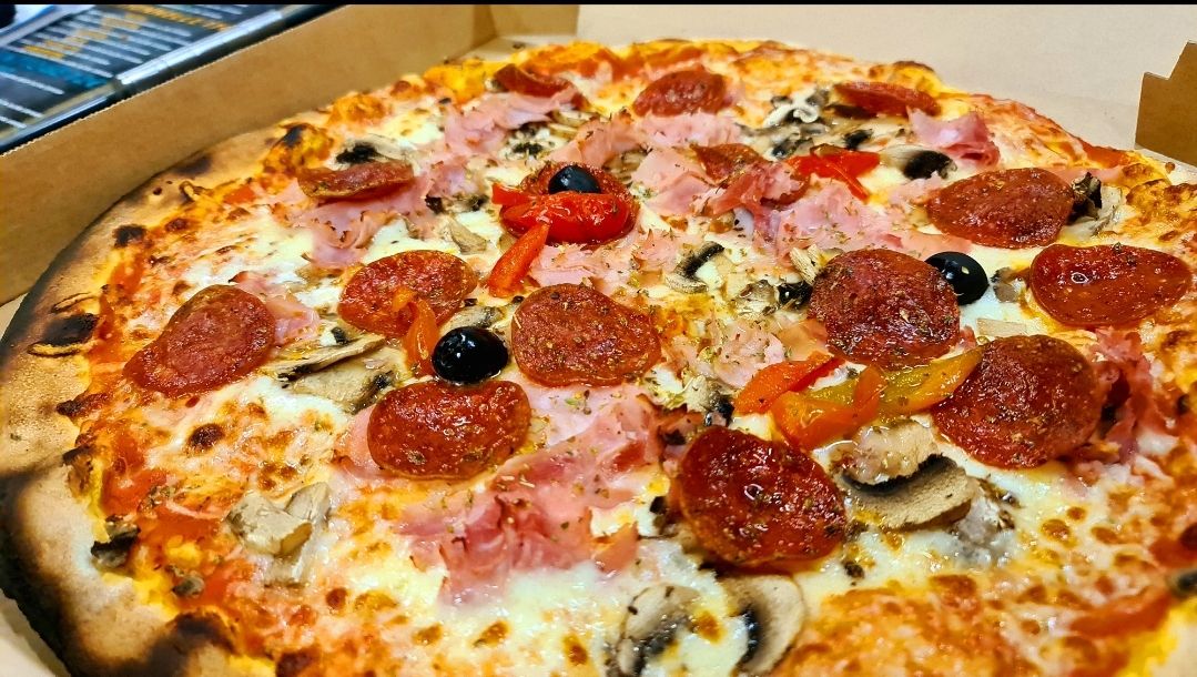 Tomato, Cheese, Ham, Mushrooms, Ognon, Pepper, Olive, Oregano