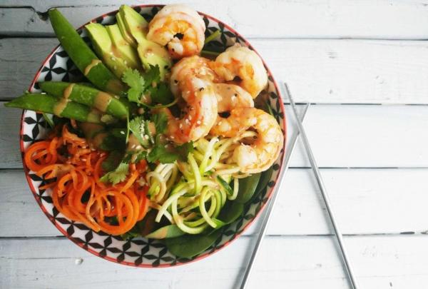 Grilled shrimps, Carrots, Guacamole, Cu…