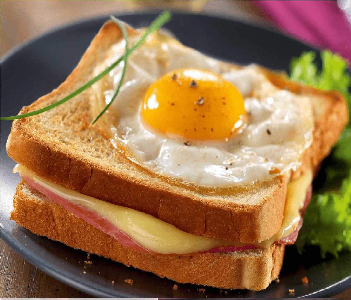 Toast, Ham, Cheese, cream, Salt, Pepper, Fried Egg