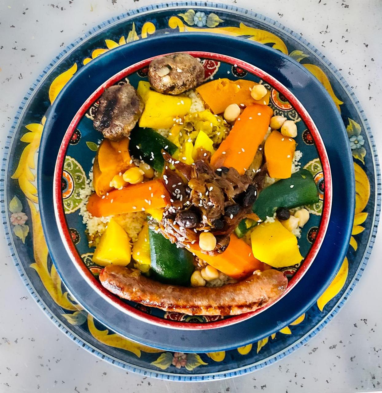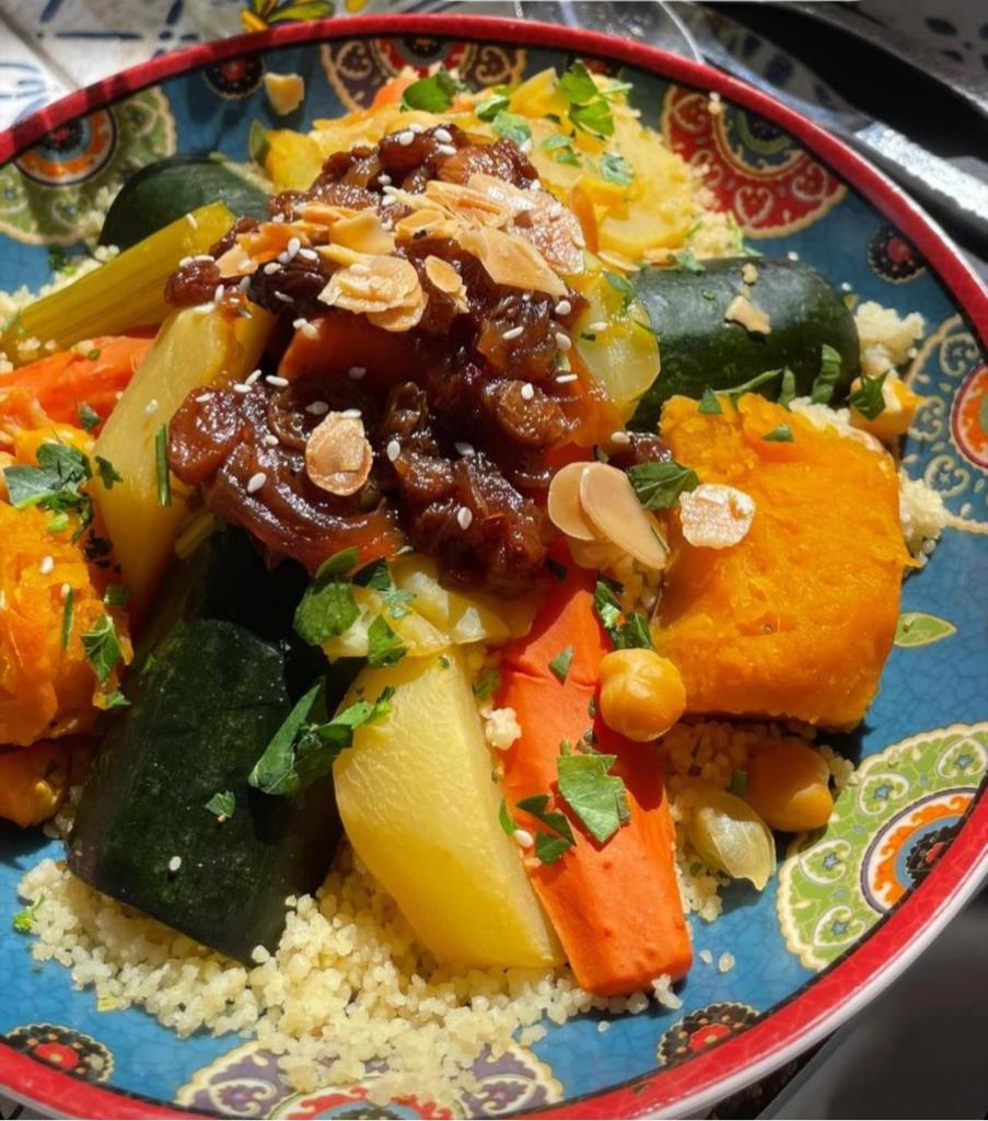 Vegetables, Candied onions, Grapes, Semolina couscous