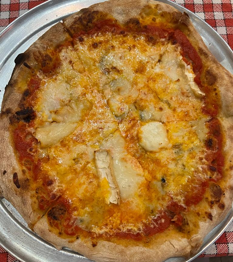 Marinara sauce, Mozzarella, Reblochon, Jack, Cheddar, Blue Cheese, Goat Cheese