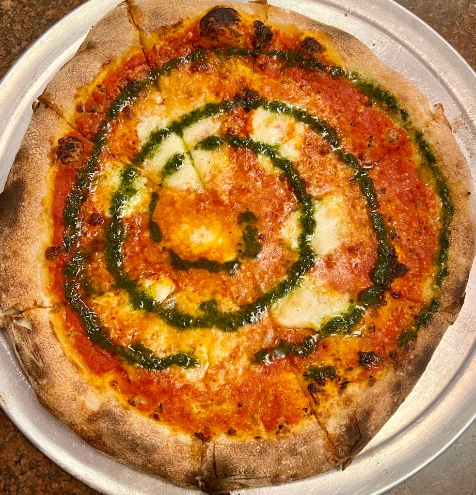 Marinara sauce, Mozzarella, Fresh spinachs, Goat cheese, Honey