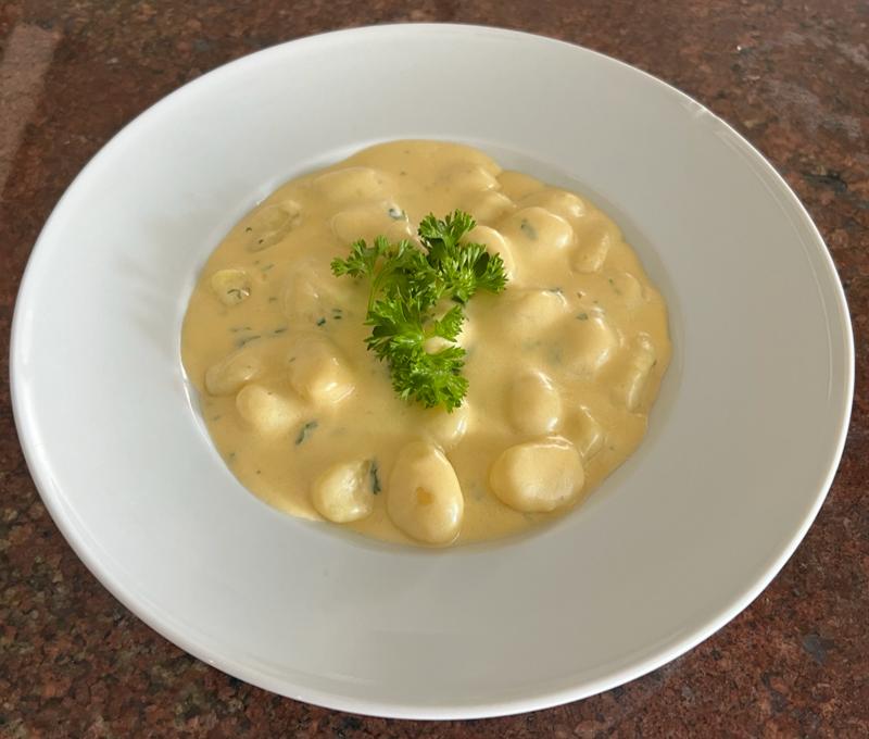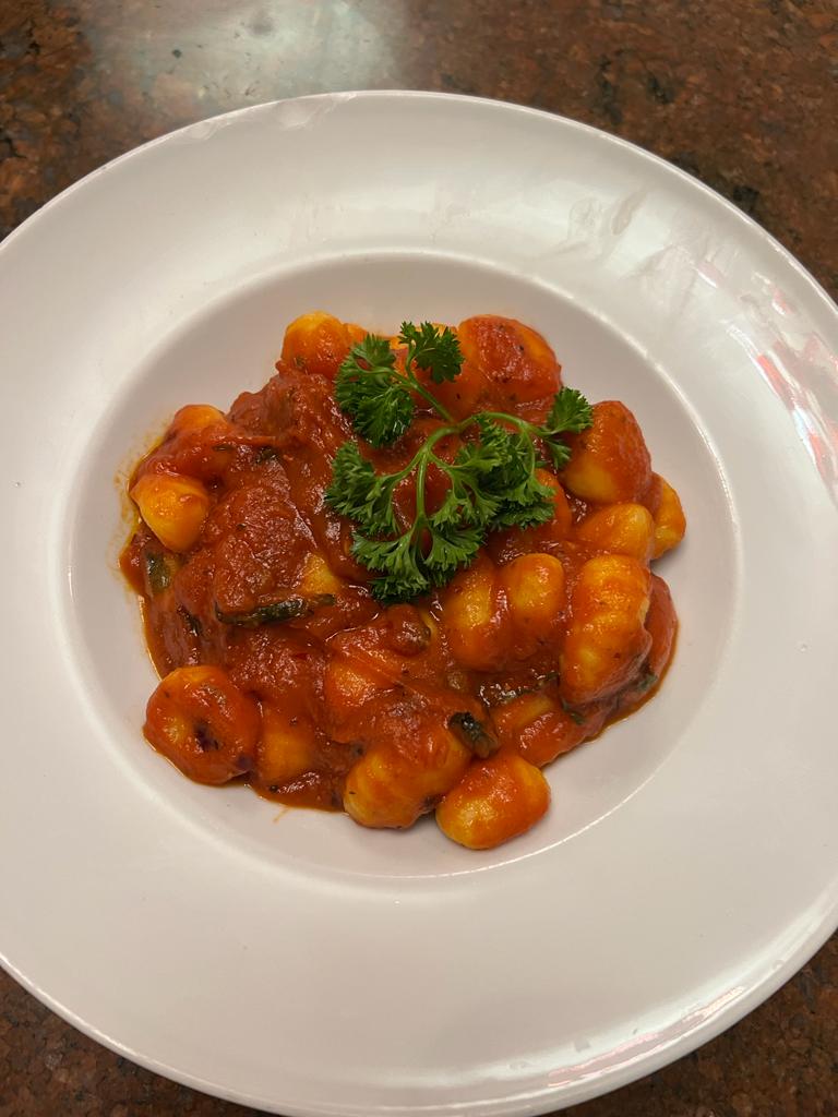 Ricotta & Spinach filling in a half moon shaped ravioli, Served with a tomato & Parmesan sauce