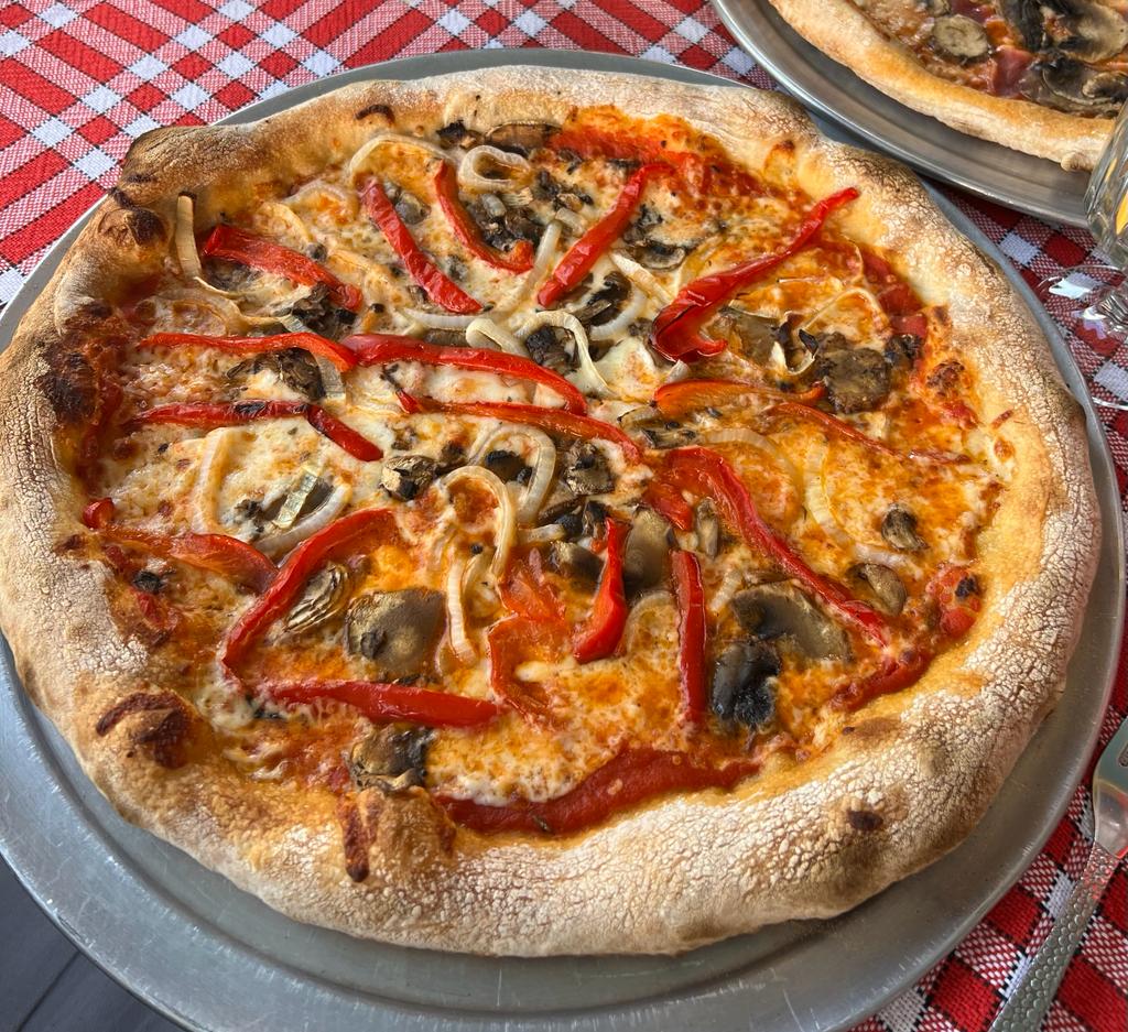 Marinara sauce, Mozzarella, Eggplants, Onions, Fresh mushrooms,