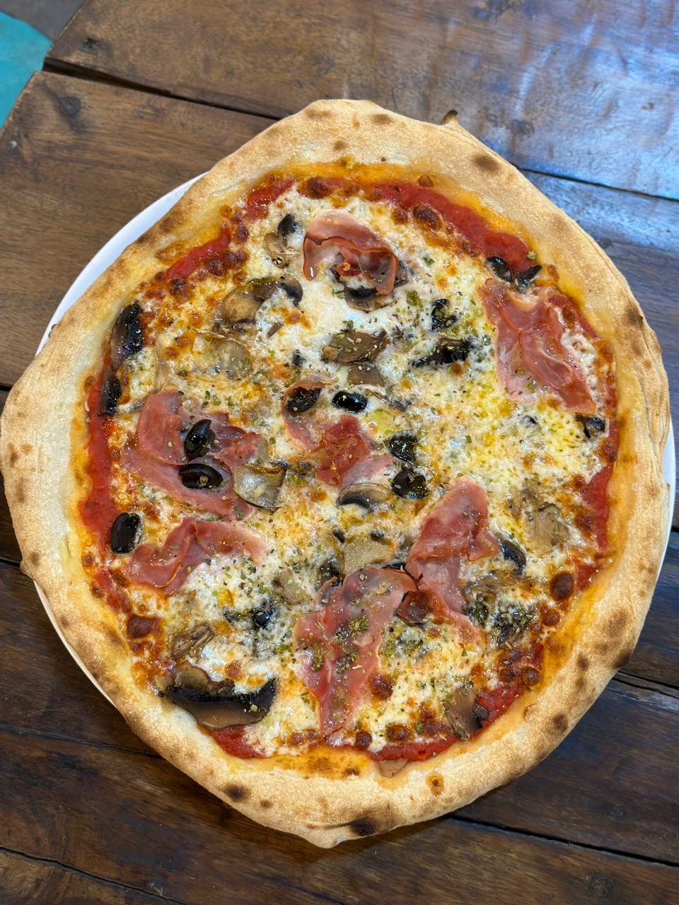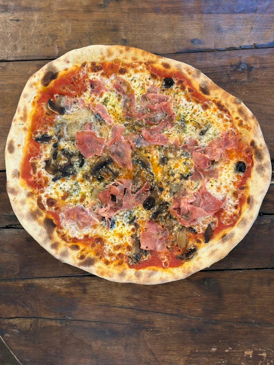 Tomato Sauce, Mozzarella, Ham, Mushrooms, Artichokes, Olives