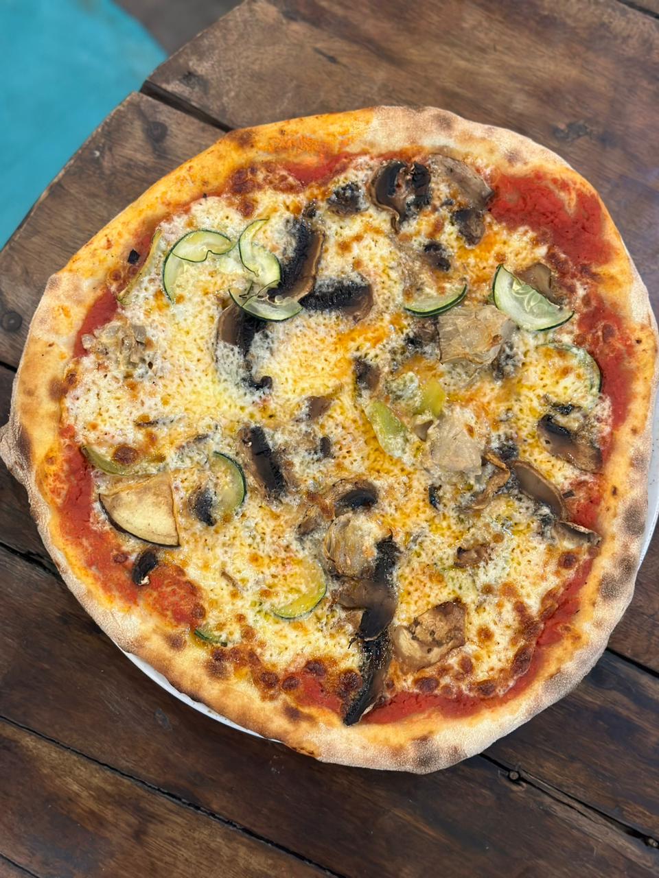 Tomato Sauce, Mozzarella, Mushrooms, Peppers, Artichokes, Eggplants, Zucchini