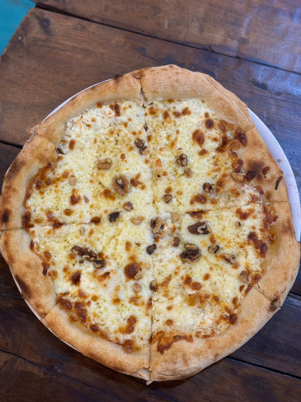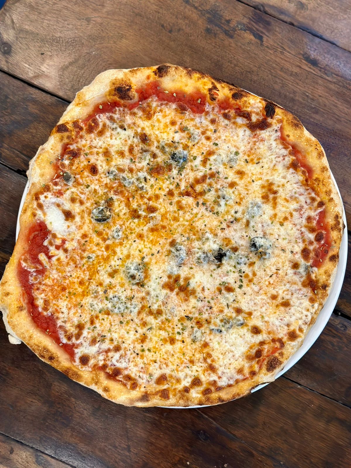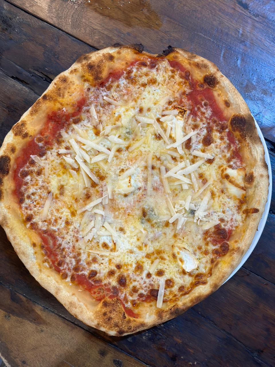 Tomato Sauce, Mozzarella, Goat Cheese, Gorgonzola, Parmesan