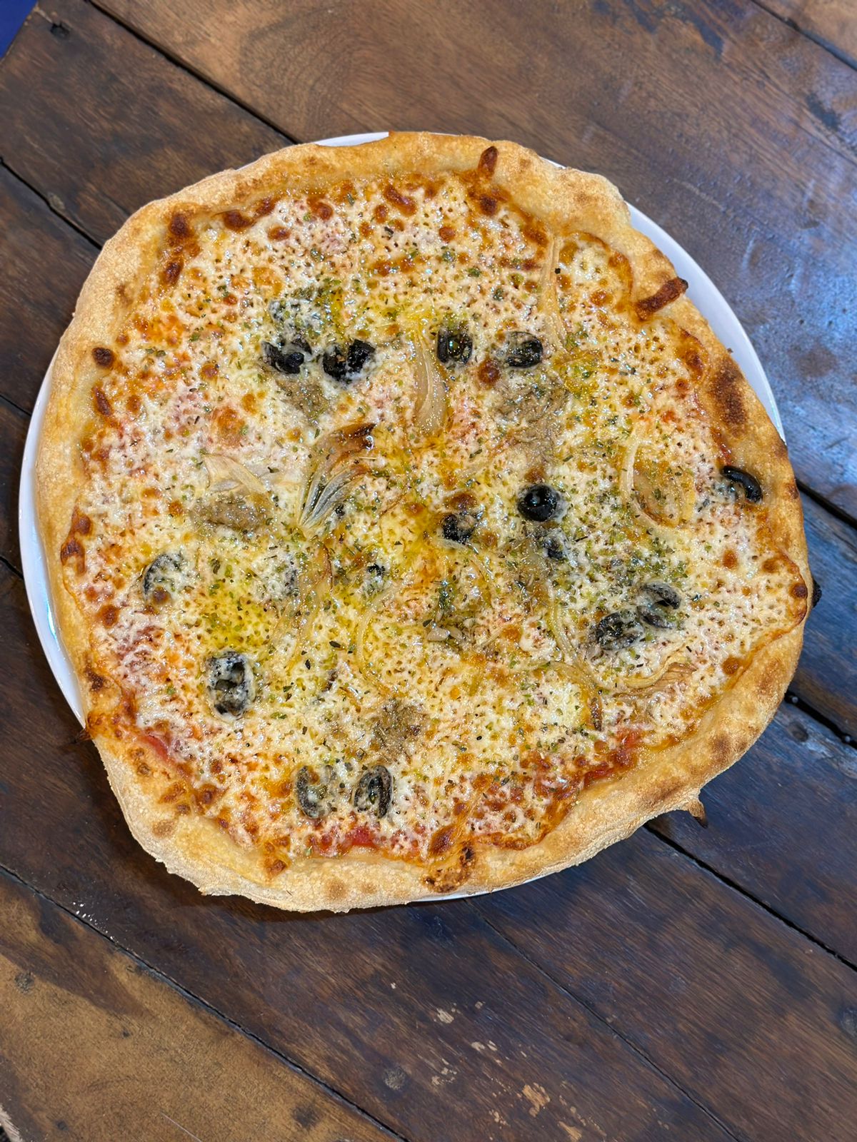 Tomato Sauce, Mozzarella, Tuna, Onion, Olives
