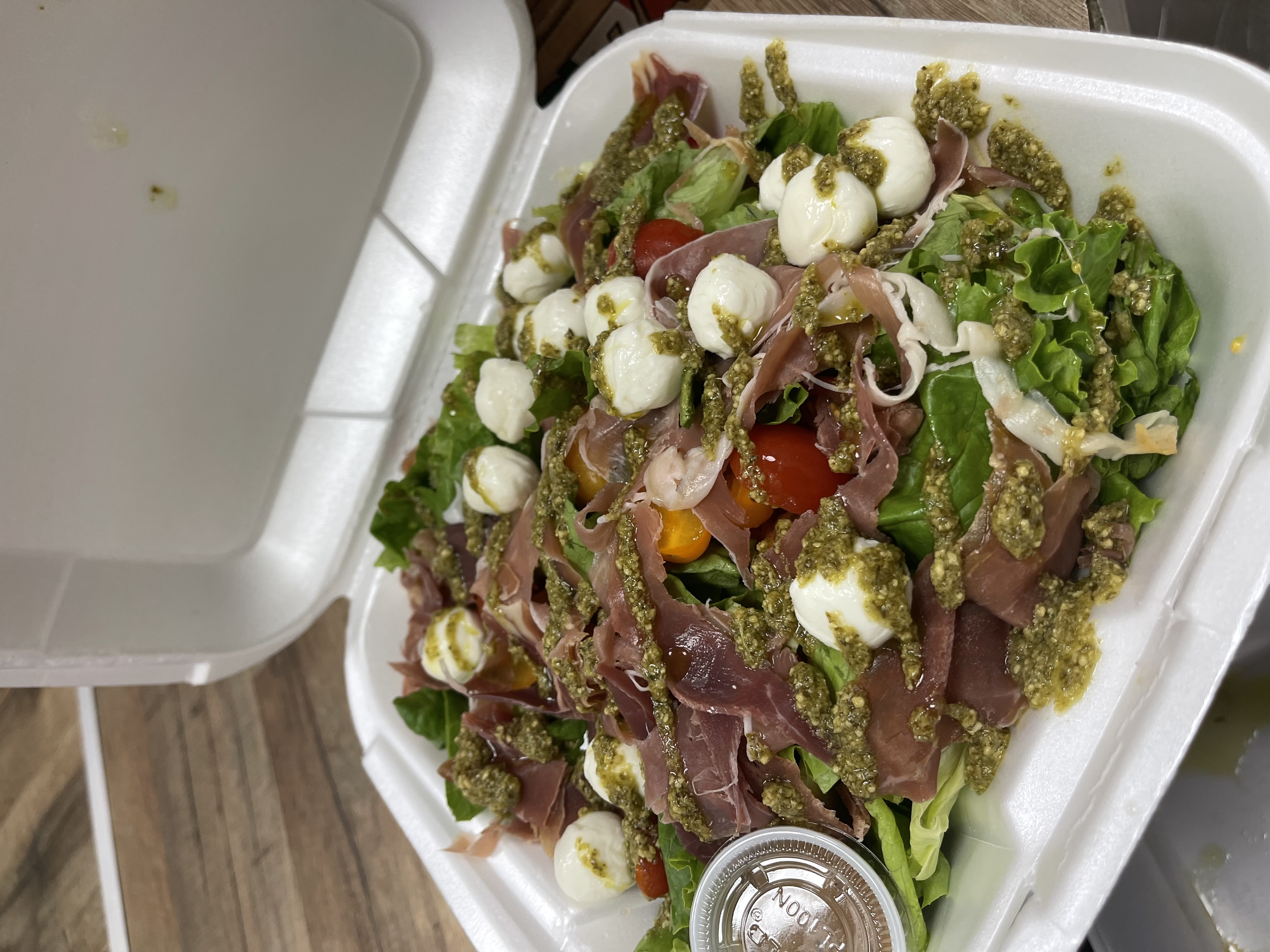 Salad, Tomato, Mozza, Raw Ham, Pesto
