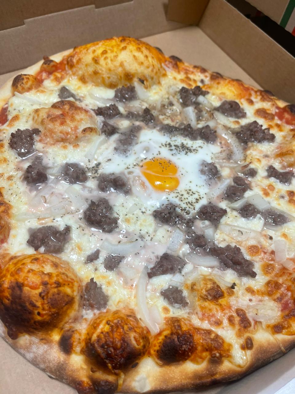 Tomato, Cheese, Minced meat, Onions , Egg