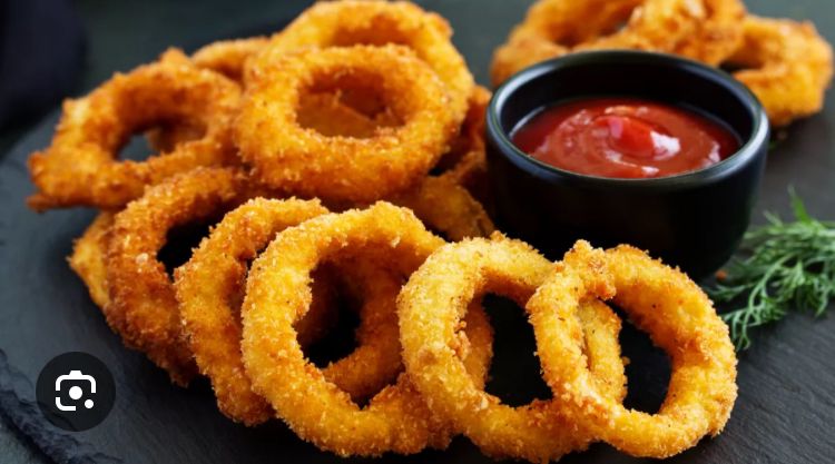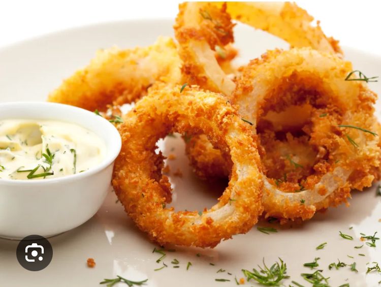 Crème fraiche, Curry, mozza, Poulet pané maison, Oignons frits, Sauce sweet chili.